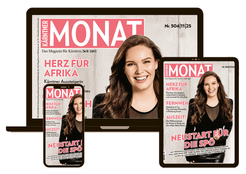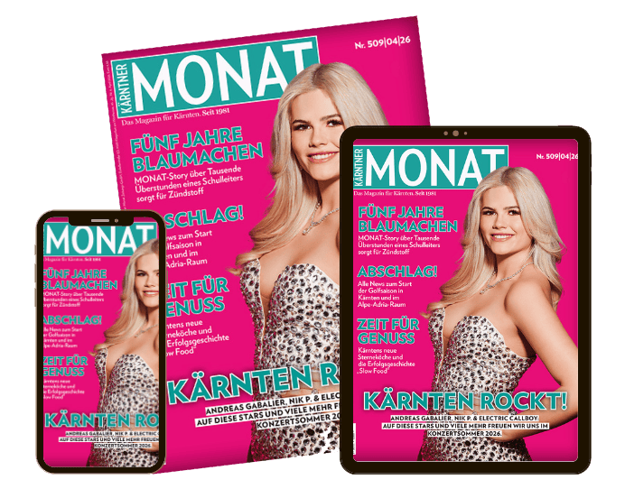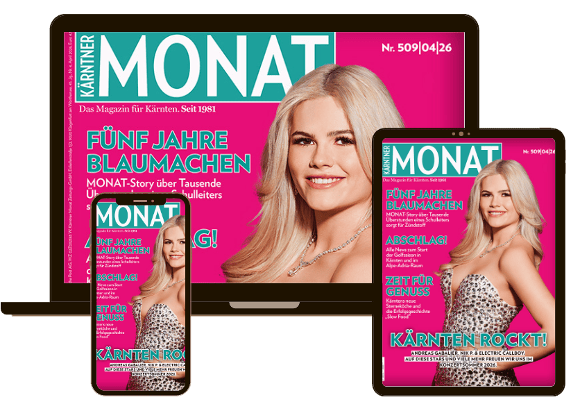 Seit 1980 ist der Kärntner MONAT das meistgekaufte Magazin Kärntens mit dem perfekten Mix aus Veranstaltungsbeiträgen, Szene- und Lifestylereportagen, Kulinarik und Kultur.