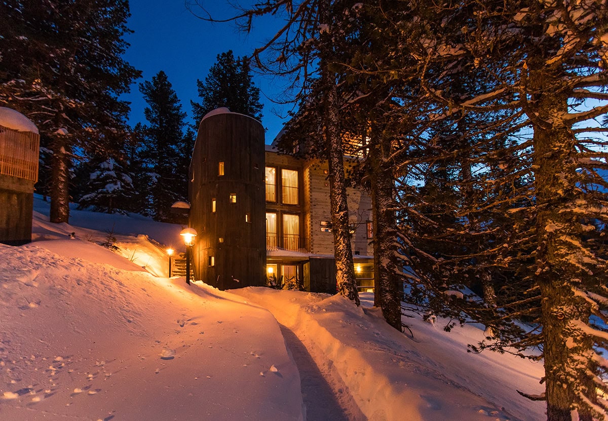 Drei Hütten – Toni, Luki und Franzi – ragen rank und schlank zwischen Zirben und Föhren in den Himmel. Hier finden Individualisten, Familien, Freunde und Paare Platz, um Wintermomente bewusst zu erleben – frei, entspannt, ein wenig Do-it-yourself, herrlich diskret und wunderbar privat.